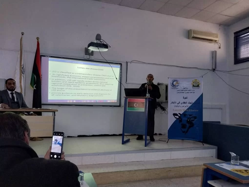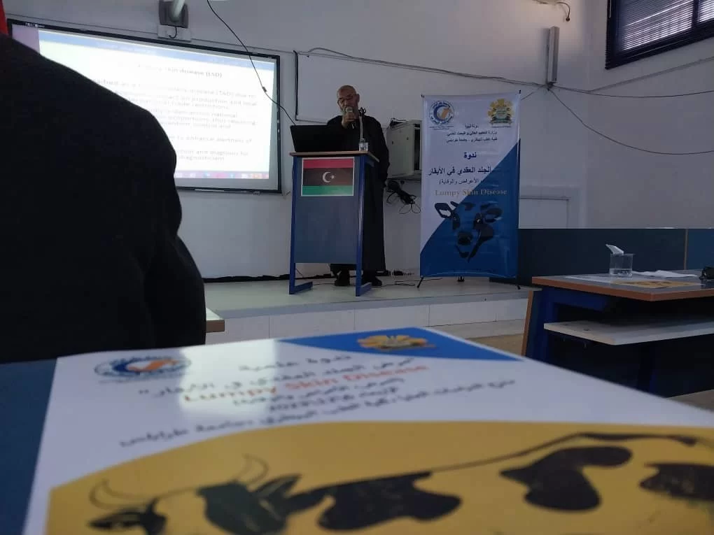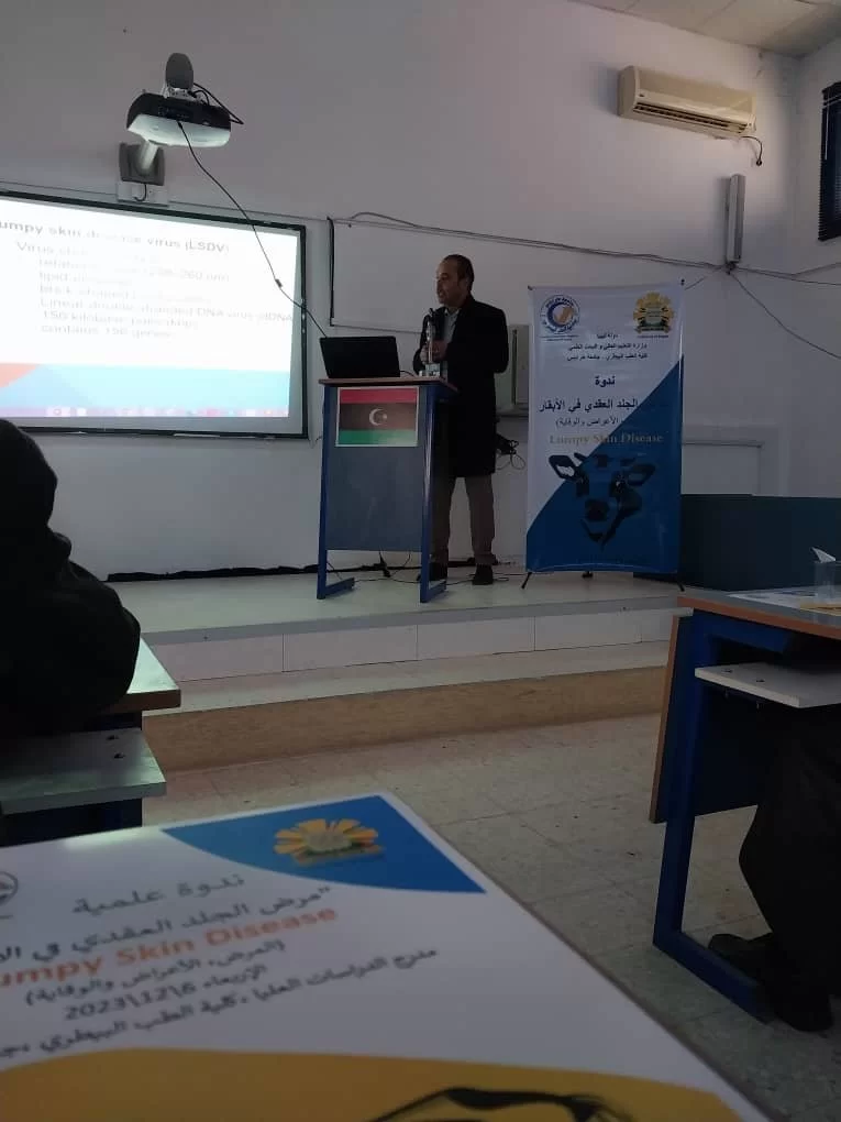أقيمت صباح اليوم الموافق 06/12/2023 ندوة علمية حول مرض الجلد العقدي في الأبقار( lumpy skin disease ) بقاعة الدراسات العليا بكلية الطب البيطري جامعة طرابلس.