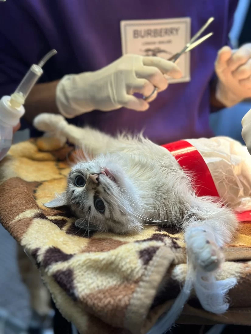 استقبل شعبة الولادة حالة لقط تعاني من عسر ولادة منذ 5 أيام حيث قام أ.د عبدالرؤوف قاجه بالكشف على الحالة وأقر بعمل عملية قيصرية لإنقاض حياة القطة.
